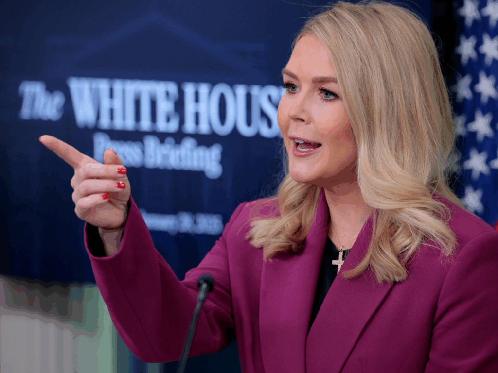 Leavitt blinked, fumbling with her cue cards.