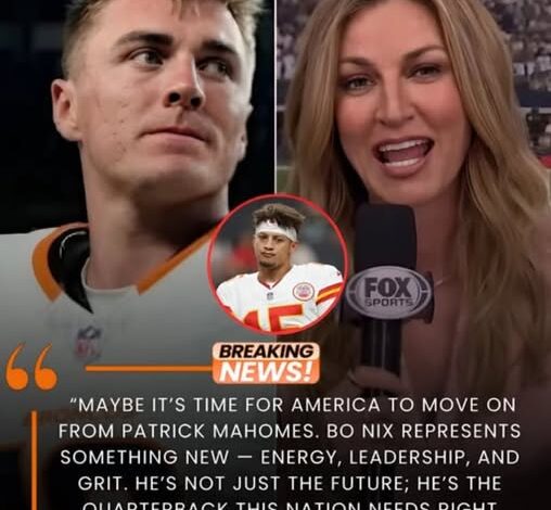With the NFL season heating up and the Chiefs under growing pressure, all eyes are now on Patrick Mahomes. Can he silence the critics and remind the world why he’s considered the face of modern football? Or has Erin Andrews’ declaration marked the beginning of a new chapter in NFL history — one where Bo Nix becomes the symbol of a changing era?