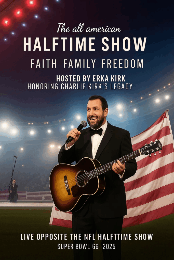 Forget the controversy, forget the division, and prepare for a cultural reset. On the biggest night in American sports, the focus will not just be on touchdowns, but on a powerful, emotional movement set to sweep the nation. The highly anticipated “The All-American Halftime Show,” led by the unlikely but deeply beloved figure of Adam Sandler, is promising to deliver something America has profoundly missed: unity, hope, and homegrown pride.