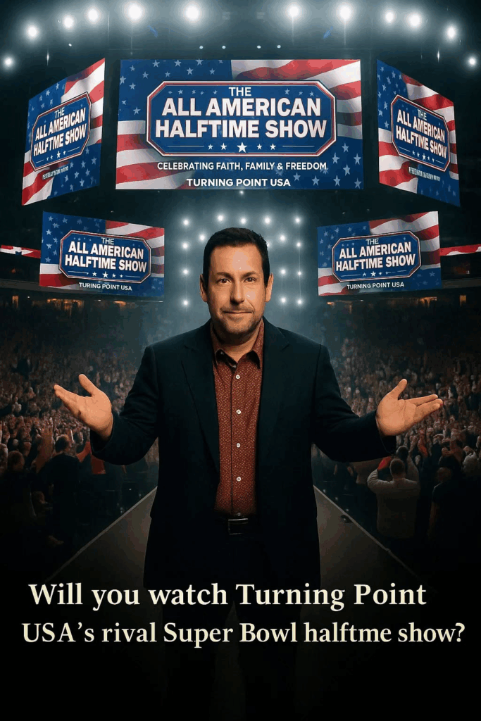 Breaking news in the cultural showdown surrounding the 2026 Super Bowl: Adam Sandler has reportedly joined Turning Point USA’s “The All-American Halftime Show,” a bold move that could reshape the halftime traditions forever. Set to air live opposite the NFL’s official halftime event headlined by Bad Bunny, this new show aims to celebrate faith, family, and freedom, forging a distinct alternative to the mainstream spectacle.