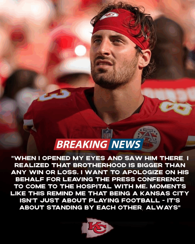 “WHEN I OPENED MY EYES AND SAW HIM THERE, I REALIZED THAT BROTHERHOOD IS BIGGER THAN ANY WIN OR LOSS. I WANT TO APOLOGIZE ON HIS BEHALF FOR LEAVING THE PRESS CONFERENCE TO COME TO THE HOSPITAL WITH ME. MOMENTS LIKE THIS REMIND ME THAT BEING A Kansas City ISN’T JUST ABOUT PLAYING FOOTBALL – IT’S ABOUT STANDING BY EACH OTHER, ALWAYS”
