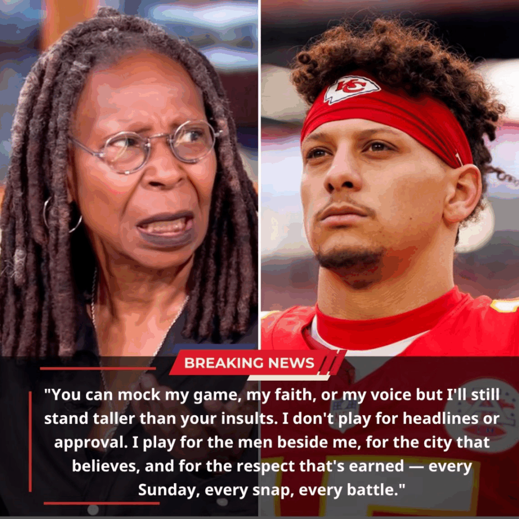 4t KANSAS CITY “EXPLODES” ON LIVE: Whoopi says 5 words “HE’S JUST A FOOTBALL PLAYER” – Mahomes looks straight at the camera, responds with 1 sentence that makes the whole studio FREEZE!Just 60 seconds later, the viral clip has millions of views: from a mild insult to a national backlash.That sentence not only left Whoopi speechless – it is shaking the NFL, Hollywood and every American living room… but what EXACTLY did he say?