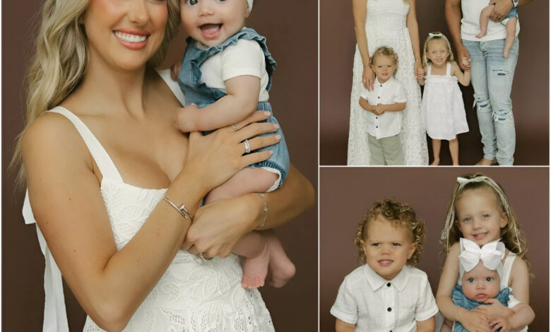 In a breathtaking photo carousel shared to Instagram, Brittany Mahomes, 29, co-owner of the Kansas City Current soccer club, unveiled the family’s first official portraits as a family of five — Patrick, Brittany, Sterling Skye (3), Bronze (1), and baby Golden Raye, now five months old.