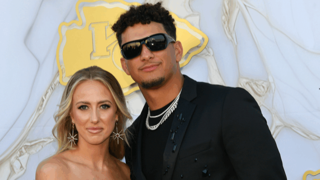 Brittany, glowing in a cream-colored gown, holds her baby close as sunlight dances across her hair. Patrick’s proud grin speaks volumes — the NFL MVP reduced, quite simply, to a doting dad.