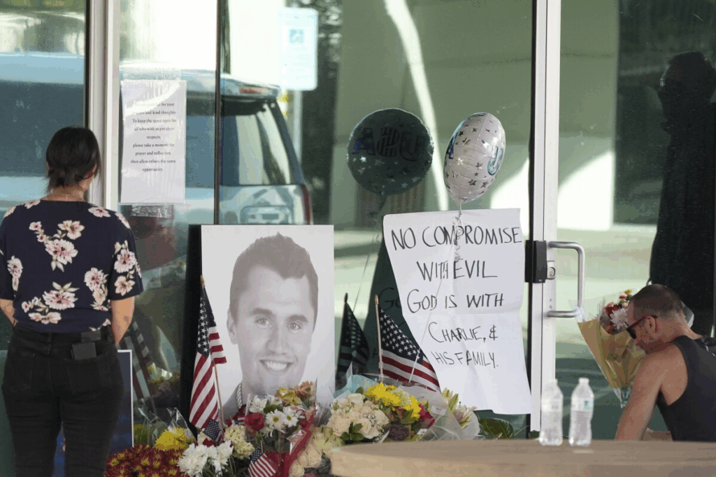 Social studies teacher Benjamin Fillo was placed on administrative leave after his video post saying Kirk “thought he proved how tough he was with his words … What a piece of garbage. Look what happens … Bye, Charlie!” (Andrew Harnik/Getty Images)
