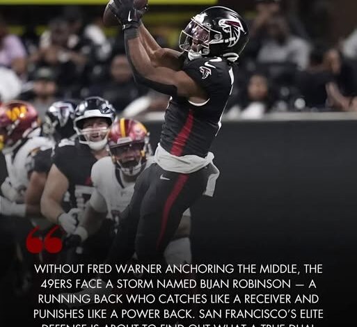 Bhan-🚨 49ers Brace for Impact — Bijan Robinson Ready to Unleash Chaos Through the Air in Shocking New Game PlanSan Francisco’s defense has seen plenty of ground attacks. But what Atlanta’s planning with Robinson? That’s something entirely new… and terrifying.