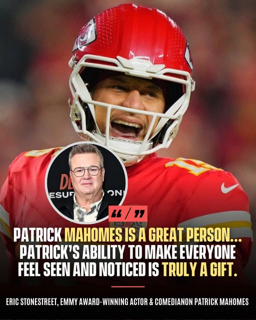 In a moment that transcends sports and celebrity, Hollywood star and dedicated Kansas City Chiefs fan Eric Stonestreet has delivered the definitive, emotional verdict on quarterback Patrick Mahomes. Stonestreet, an Emmy-winning actor known for his insightful commentary, didn’t just praise the Chiefs superstar—he framed Mahomes’s legacy in a way that has Chiefs fans melting and the entire NFL world pausing to reflect.