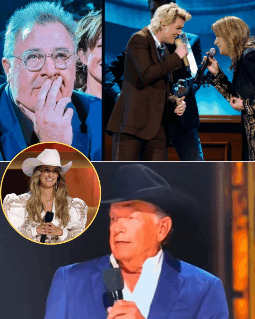 Then, the arena erupted as George Strait — last year’s Willie Nelson Lifetime Achievement Award recipient — walked onstage for a surprise appearance. With grace and admiration, Strait presented the 2025 trophy to Gill, marking a true passing of the torch between two country music greats.