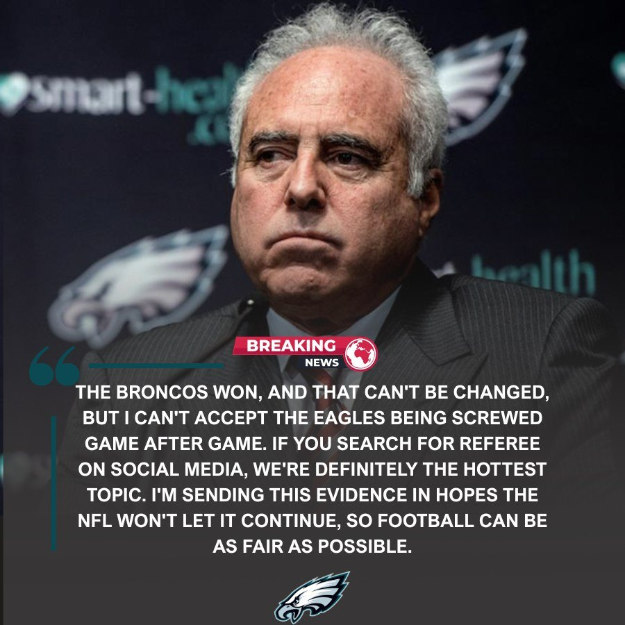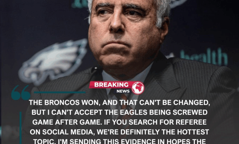 In the statement accompanying the evidence, Chairman Jeffrey Lurie emphasized: “The Broncos won, and that can’t be changed, but I can’t accept the Eagles being screwed game after game. If you search for Referee on social media, we’re definitely the hottest topic. I’m sending this evidence in hopes the NFL won’t let it continue, so football can be as fair as possible.”