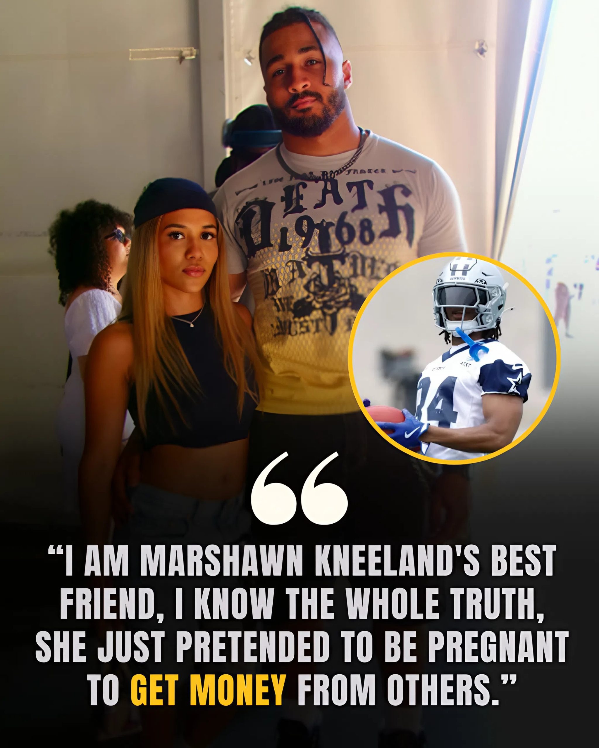 Frisco, Texas — The Dallas Cowboys were already navigating the emotional fallout from the tragic loss of rising star Marshawn Kneeland when a shocking internal dispute erupted and tore its way into national headlines. According to multiple sources inside the team facility, rookie linebacker Dorian Wells — a fourth-round pick known for his fiery personality and unfiltered speech — made a stunning accusation during a private team discussion, suggesting that Catalina Mancera, Kneeland’s girlfriend, had fabricated her pregnancy to gather sympathy and donations from fans.