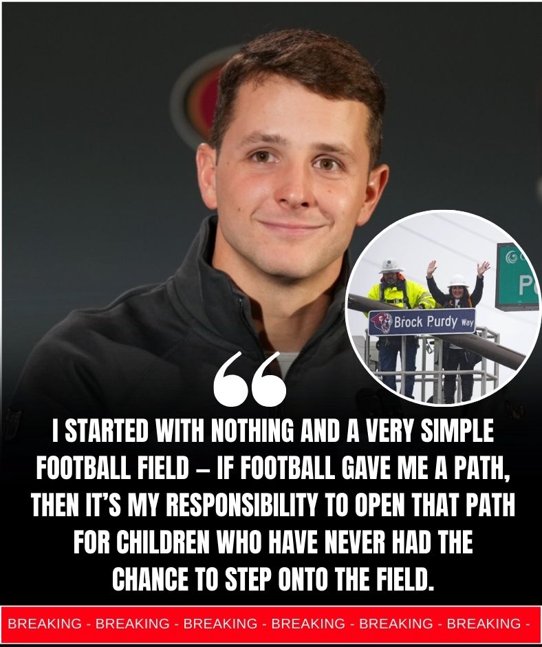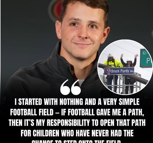 In a move that has touched hearts across the NFL and far beyond, San Francisco 49ers quarterback Brock Purdy has just purchased the very public football field where he first learned how to throw a spiral. But in a world where success often leads to exclusivity, Purdy chose a different path. He didn’t buy the field to rename it, fence it off, or transform it into a private showcase. Instead, he’s turning it into Purdy Pathways — a multi-million-dollar football and education academy designed for kids who have never truly had the chance to experience the game.