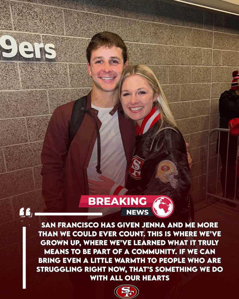 As the story spread, Brock Purdy shared a heartfelt message to the 49ers Faithful: “San Francisco has given Jenna and me more than we could ever count. This is where we’ve grown up, where we’ve learned what it truly means to be part of a community. If we can bring even a little warmth to people who are struggling right now, that’s something we do with all our hearts. This city always knows how to stand beside each other, and we just wanted to add our small part to that.” A statement that made 49ers fans love the young couple even more.