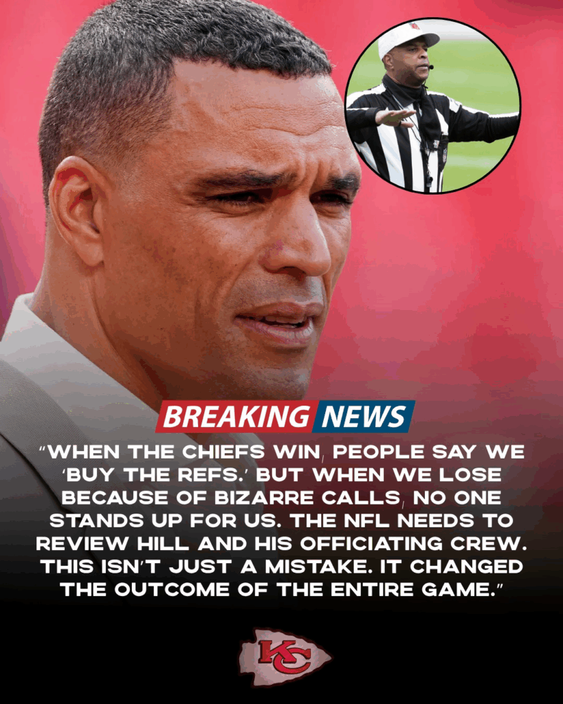“WHEN THE CHIEFS WIN, PEOPLE SAY WE ‘BUY THE REFS.’ BUT WHEN WE LOSE BECAUSE OF BIZARRE CALLS, NO ONE STANDS UP FOR US. THE NFL NEEDS TO REVIEW HILL AND HIS OFFICIATING CREW. THIS ISN’T JUST A MISTAKE. IT CHANGED THE OUTCOME OF THE ENTIRE GAME.”