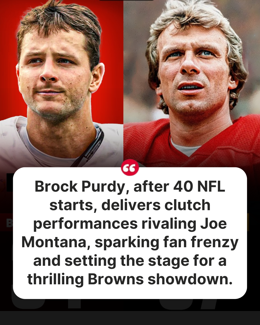 Brock Purdy’s first 40 starts in the NFL have put him in rarefied air, drawing immediate comparisons to the legendary Joe Montana. While some skeptics questioned whether Purdy could maintain consistency, his latest performances have not only quieted doubters but also electrified the 49ers fanbase. Fans are now buzzing about his poise, leadership, and ability to deliver under pressure — traits reminiscent of Montana during his early career.