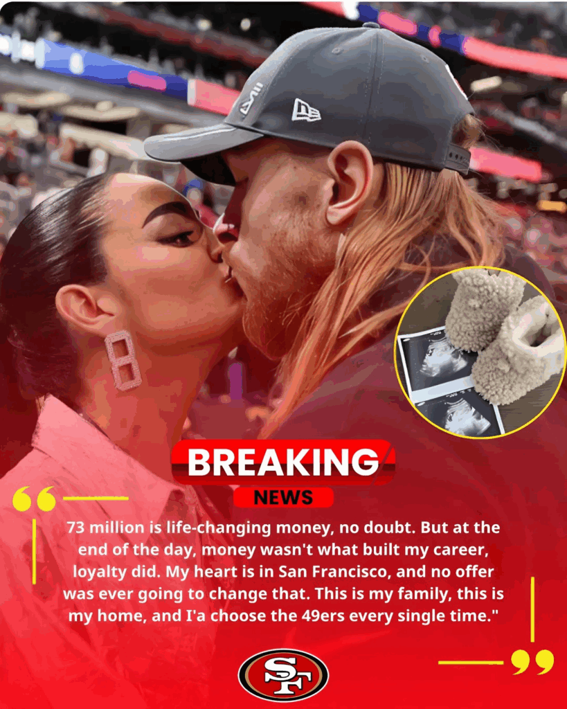 In this fictional, feel-good storyline crafted for fans, George Kittle and his wife Claire share the news that they’re expecting their first child — and the entire football world erupts with joy.