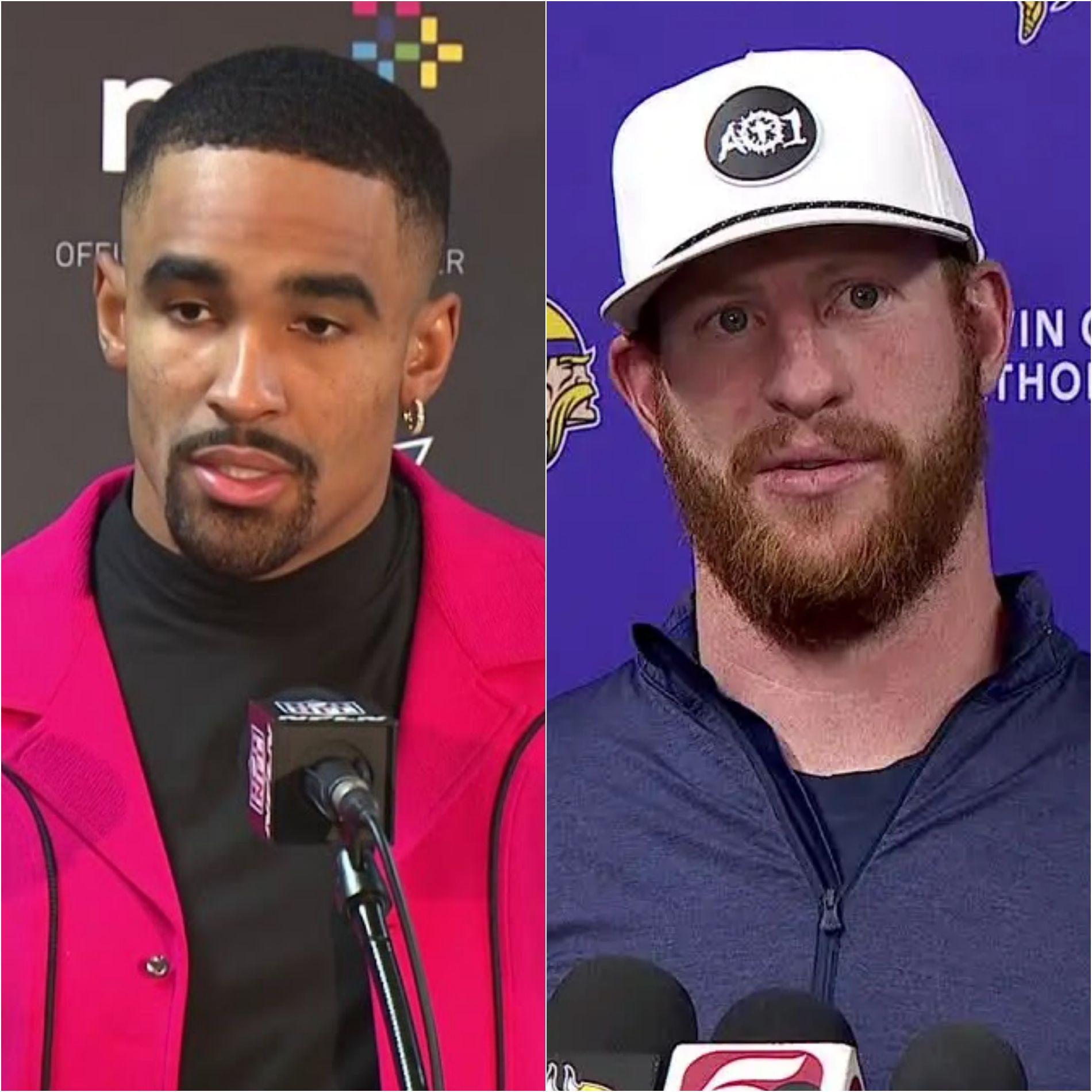 Adding fuel to the pre-game excitement was a little bit of playful trash talk between quarterbacks. Jalen Hurts, the Eagles’ star signal-caller, didn’t hold back in a brief pre-game interview. “Hope you’re ready, old friend… I wouldn’t want you to trip over my highlight reels,” Hurts teased Carson Wentz, sending social media into a frenzy. The comment was cheeky, but it perfectly captured the competitive fire and charisma that make these two quarterbacks fan favorites. Wentz, known for his calm yet determined demeanor, smirked at the remark, hinting that he was more than ready to respond on the field. Fans of both teams immediately began speculating how this verbal sparring would translate into gameplay, making the matchup feel even more like a high-stakes chess match.