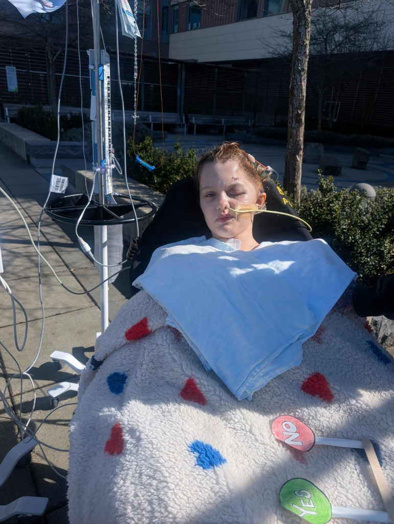 We wheeled her up to the patio—just a small, simple space with a few chairs and a bit of open sky. It was only about 20 minutes. But the sun was shining. A soft breeze touched her face. And for those fleeting moments, she was just a 12-year-old girl again — not a patient, not a fighter in a battle no child should ever face… just Jazzy, breathing real air, feeling real warmth on her skin.