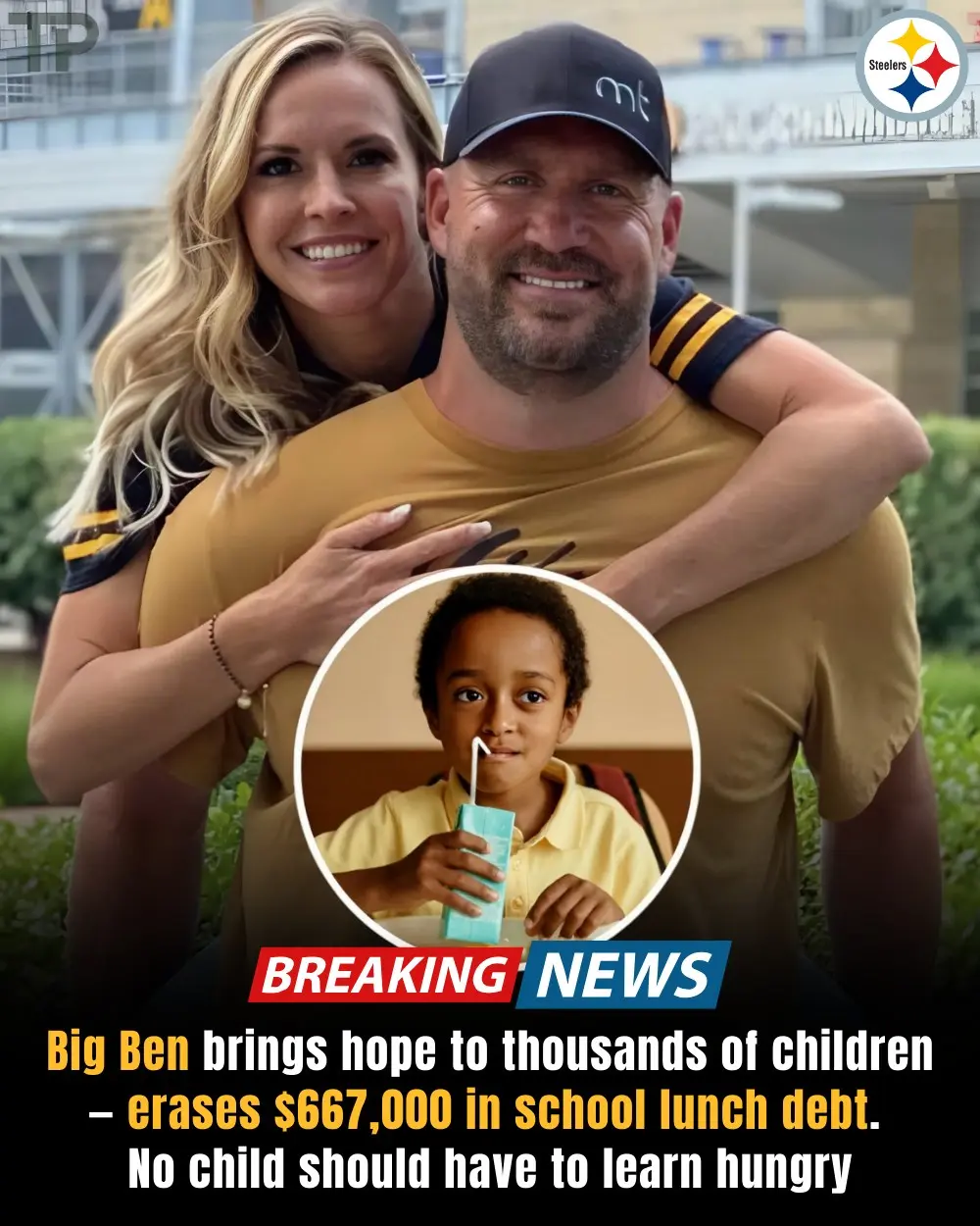 kk.BREAKING: Steelers legend Ben Roethlisberger and his wife erase $667,000 in school lunch debt across 103 schools — calling it “a victory greater than the Super Bowl” that ensures thousands of children can eat without hunger or shame. 💖✨