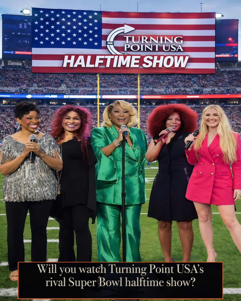 According to multiple social media accounts and commentary amplified across digital platforms, four veteran recording artists — Gladys Knight, Chaka Khan, Patti LaBelle, and Stephanie Mills — have agreed to participate in what is being described as a live alternative halftime broadcast associated with Erika Kirk and Turning Point USA. The broadcast is rumored to be intentionally scheduled to run head-to-head with the Super Bowl’s official halftime show, rather than serving as a replay or postgame program.