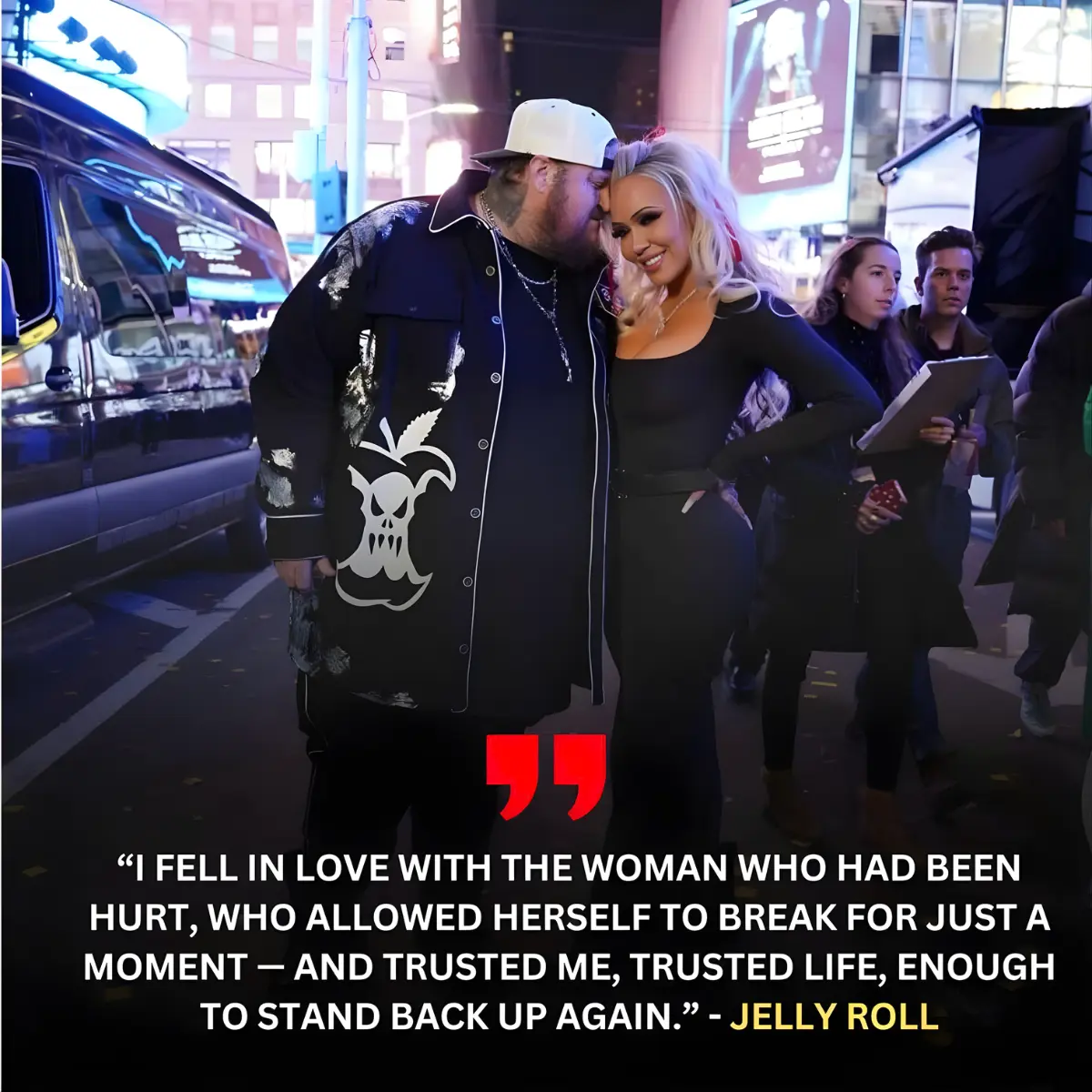 In an industry that often celebrates conquest and certainty, Jelly Roll’s words stand out precisely because they reject both. He does not present himself as the hero of the story. He presents himself as someone who showed up and stayed. That distinction matters. It transforms love from something you take into something you offer.
