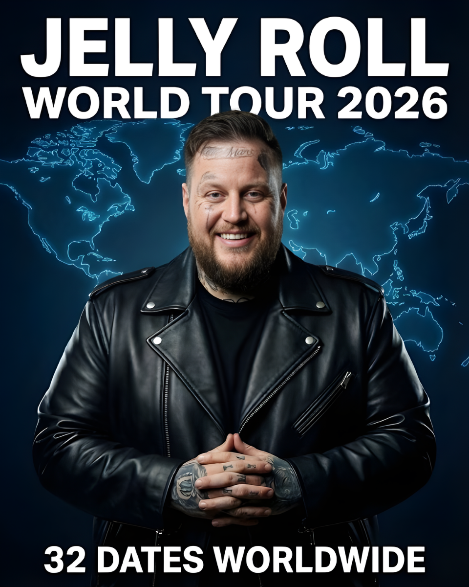 The announcement instantly sent shockwaves through the global music community, confirming that Jelly Roll is preparing for the most ambitious live chapter of his career. The Jelly Roll World Tour 2026 spans three continents and 32 carefully curated dates, marking a decisive evolution from arena favorite to full-fledged global headliner. For fans, it is more than a tour announcement; it is a declaration that Jelly Roll’s moment is no longer confined to North America.