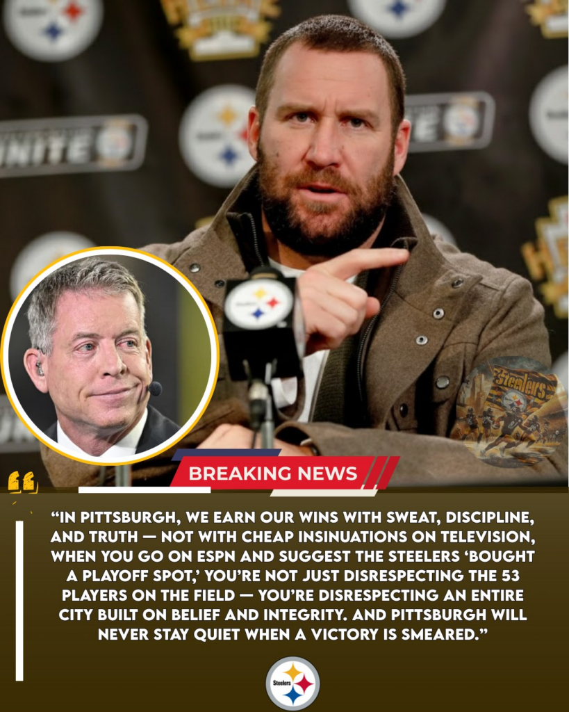 kk.Steelers Legend Ben Roethlisberger Speaks Out to Defend Pittsburgh After Troy Aikman’s Shocking “Playoff Spot Bought” Accusation on Sunday Night ESPN — Viral Video Lists 3 Direct Reasons That Have Steelers Nation Furious
