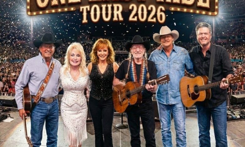 Titled “ONE LAST RIDE: COUNTRY ROYALTY TOUR 2026,” the event will bring together George Strait, Dolly Parton, Reba McEntire, Willie Nelson, Alan Jackson, and Blake Shelton for a one-off performance under the open English sky. It is a gathering that many experts believed was a logistical impossibility—a “Mount Rushmore” of country music finally standing side-by-side.