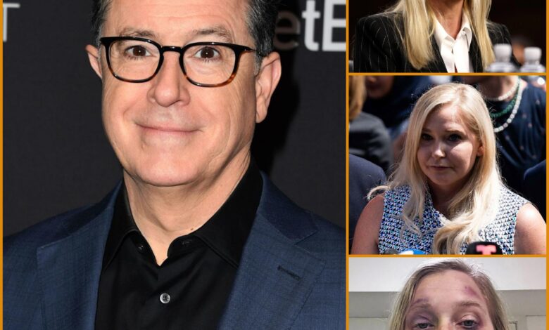 For the first time on a major network, Colbert spoke the name Virginia Giuffre the way prosecutors do in court—slowly, deliberately, refusing to let it dissolve into tabloid static. He held up her newly unsealed memoir like it was Exhibit A. Then he opened it, not for a funny passage, but for the one that lists names, dates, flights, islands. Names that have floated in depositions for years but were never allowed to drift away because they were “too radioactive for primetime.”