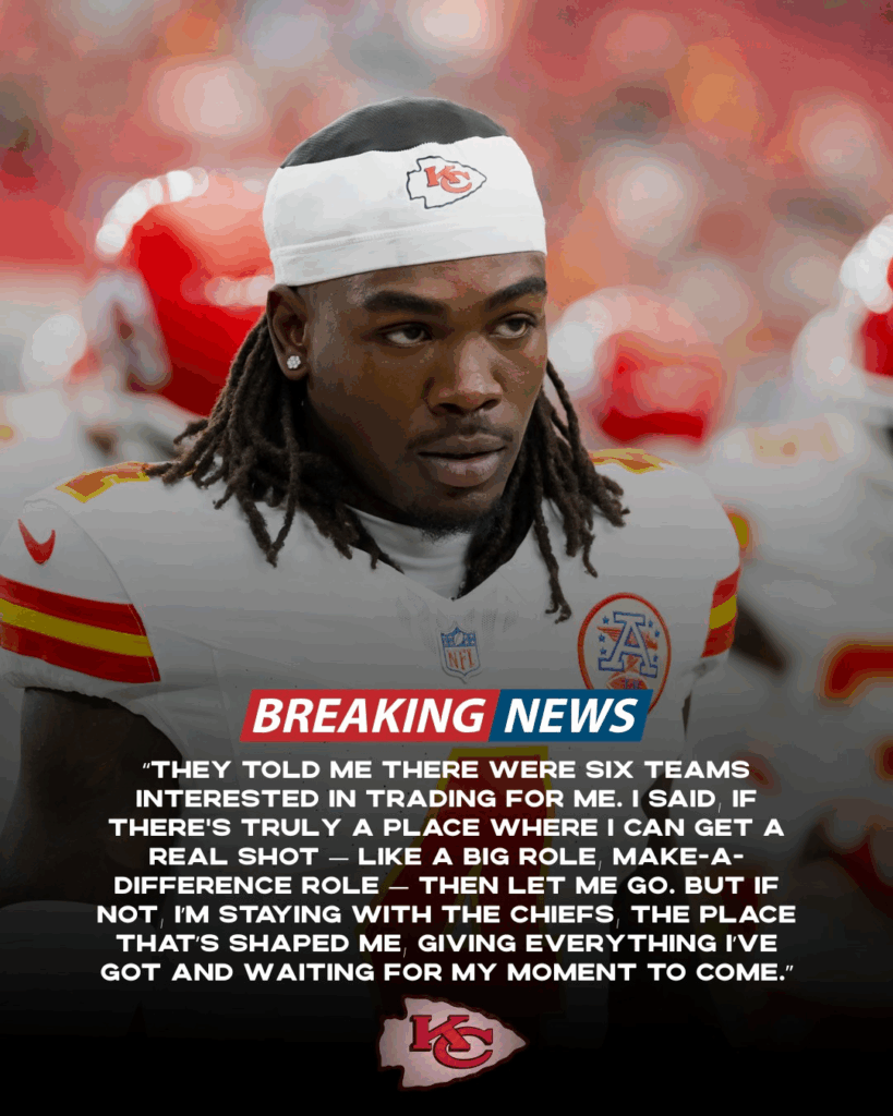 When asked about conversations with potential trade suitors, Rice adapted the quote originally made by another athlete, saying: “They told me there were six teams interested in trading for me. I said, if there’s truly a place where I can get a real shot — like a big role, make-a-difference role — then let me go. But if not, I’m staying with the Chiefs, the place that’s shaped me, giving everything I’ve got and waiting for my moment to come.” His message underscored loyalty to Kansas City while acknowledging the realities of business.