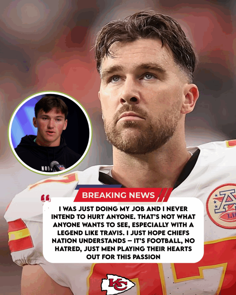 Kelce, still wearing protective tape over his chest area, smiled and patted the young player’s shoulder, displaying forgiveness and peak sportsmanship. The image moved millions of NFL fans – when two generations of players showed mutual respect right after a collision that left the entire stadium holding its breath.