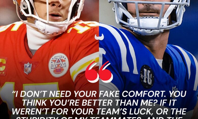 Mtp.As the Chiefs celebrated their 23–20 win over the Colts, Indianapolis quarterback Daniel Jones sat alone on the sideline, head bowed in frustration after one of the toughest nights of his career. Seeing this, Chiefs quarterback Patrick Mahomes walked across the field in a gentle, respectful gesture, placed his hand on Jones’s shoulder, and offered a few words of comfort. What seemed like a warm moment between the players, Jones immediately became chaotic—Jones slapped Mahomes’s hand and returned the blow in anger. In seconds, tensions exploded…
