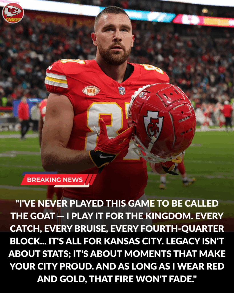 The image was just as powerful as the words — Travis Kelce, helmet off, kneeling on the Arrowhead turf, sweat dripping under the roaring red lights. It wasn’t a victory pose. It was the quiet posture of a warrior who’s given everything, season after season, for the team that defines him. For Chiefs fans, it wasn’t just a picture. It was a statement —