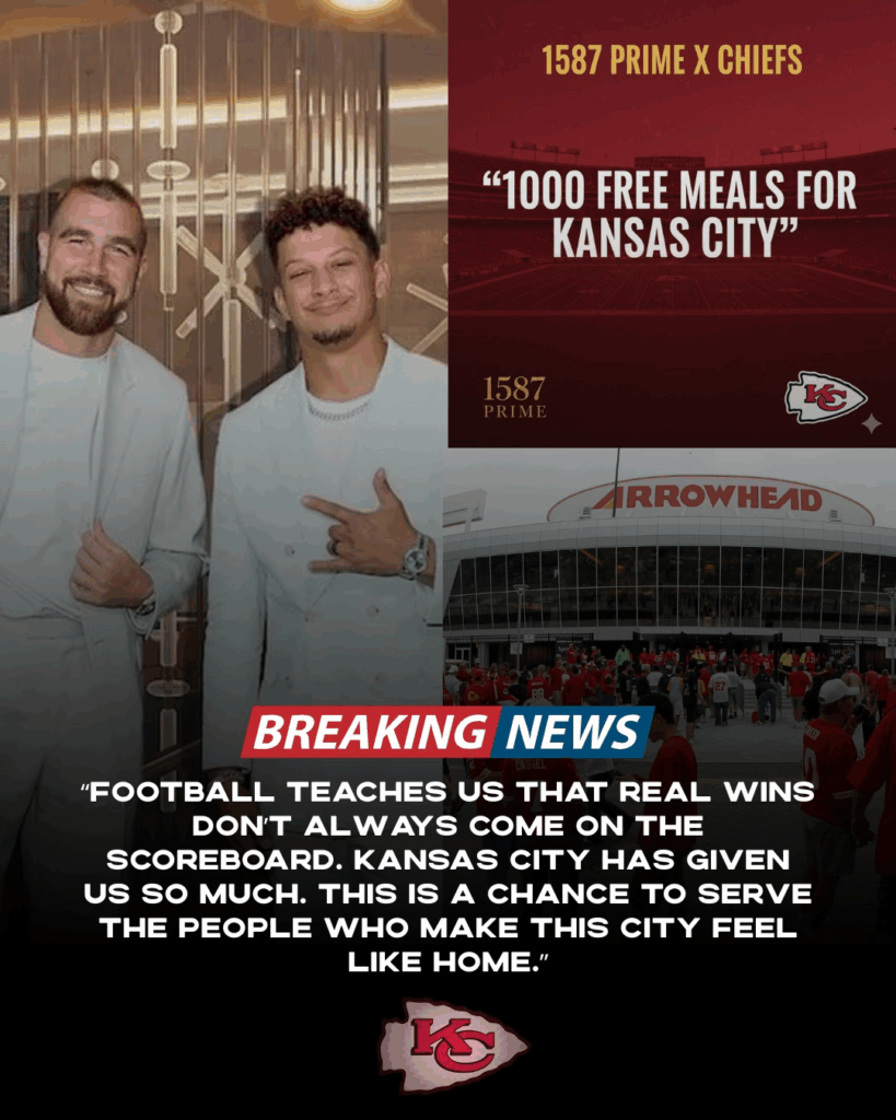 After weeks of criticism surrounding the sky-high prices and lukewarm reviews of 1587 Prime, the upscale steakhouse owned by Kansas City Chiefs stars Patrick Mahomes and Travis Kelce, the two are turning headlines into hope. Partnering directly with the Chiefs organization, Mahomes and Kelce announced a new community effort: the “1000 Free Meals for KC” campaign, set to take place ahead of Monday night’s Week 8 matchup against the Washington Commanders at Arrowhead Stadium.
