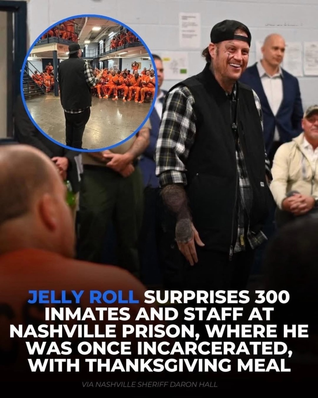 In one of the most emotional and symbolic moments of his career, Jelly Roll returned this week to the Nashville prison where his life once spiraled to its lowest point — but this time, he walked through the gates not as an inmate, but as a man on a mission to give back. On Thanksgiving Day, the chart-topping country-rap artist served dinner to more than 300 inmates and staff members, turning a place of pain into a place of purpose.