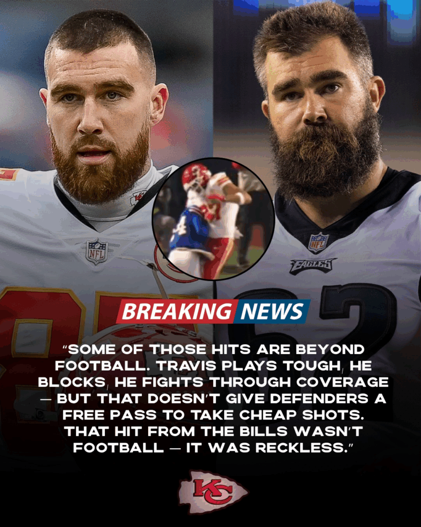 “Some of those hits are beyond football,” Jason said firmly. “Travis plays tough, he blocks, he fights through coverage — but that doesn’t give defenders a free pass to take cheap shots. That hit from the Bills wasn’t football — it was reckless.”