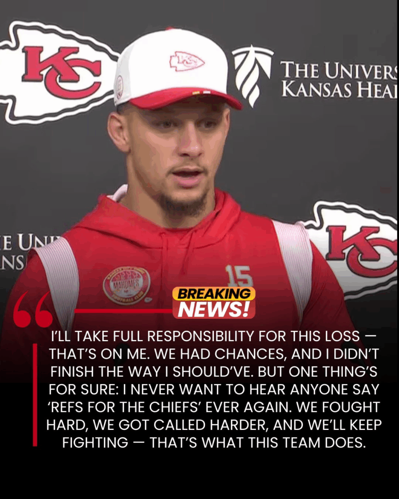 “I’ll take full responsibility for this loss — that’s on me,” he said. “We had chances, and I didn’t finish the way I should’ve. But one thing’s for sure: I never want to hear anyone say ‘Refs for the Chiefs’ ever again. We fought hard, we got called harder, and we’ll keep fighting — that’s what this team does.”