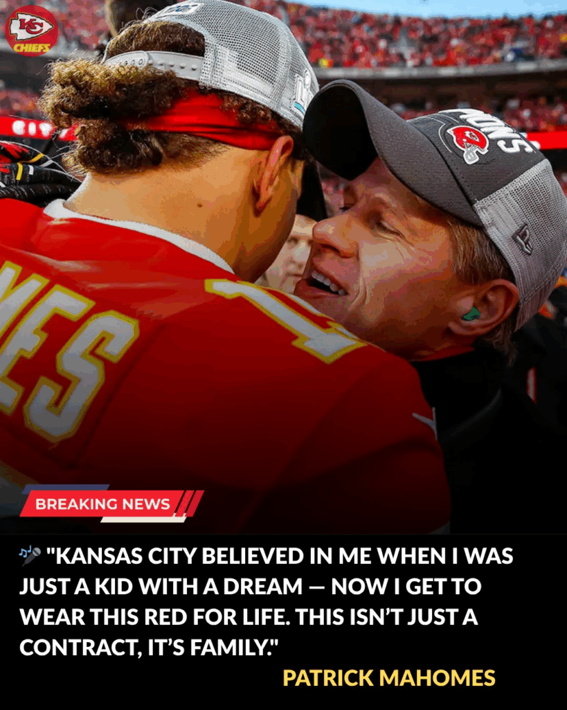 The moment the announcement hit social media, fans erupted across the nation. Kansas City lit up with celebration — horns honking, jerseys flying off the shelves, and “MAHOMES FOR LIFE” trending across every platform.