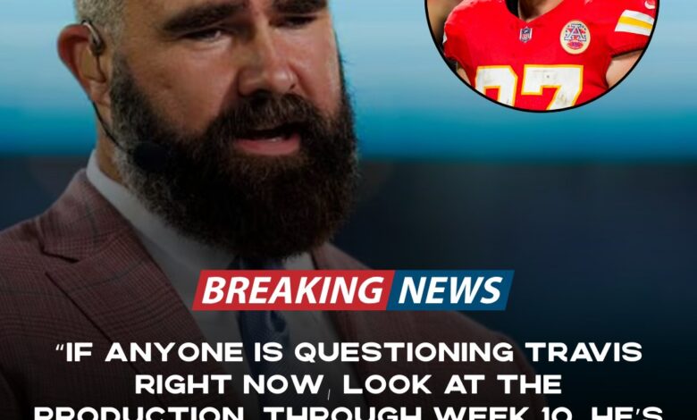 “If anyone is questioning Travis right now, look at the production. Through Week 10, he’s leading all tight ends in total yardage. He’s still playing at the highest level in this league,” Jason said in a social media post featuring a photo of Travis crossing the goal line.