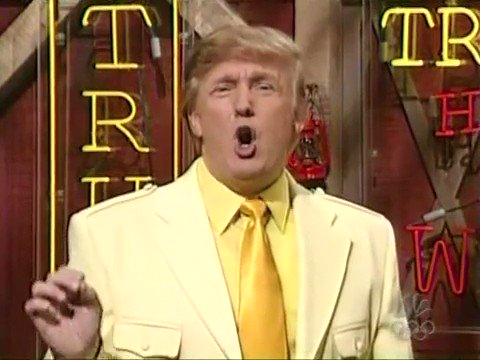 At the time the sketch was filmed, Donald Trump was primarily known as a business magnate, real-estate mogul, and tabloid fixture — not a political figure. His celebrity was rooted in branding, flamboyance, and media appearances, making him a curious but not entirely surprising guest for a late-night comedy show.