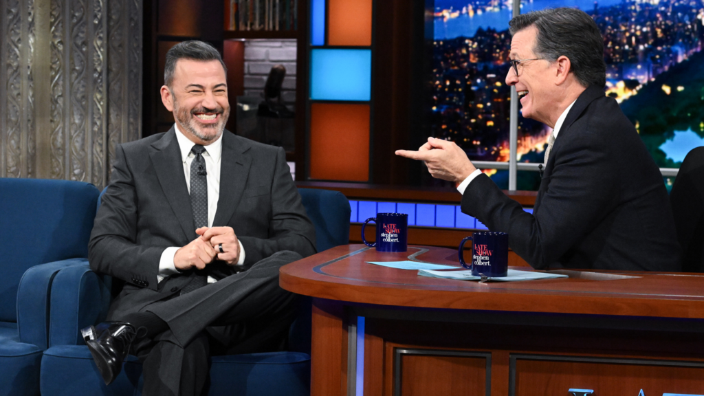 No joint live segment, chaotic crossover or real-time demolition of that nature ever aired on major network television. Mr. Kimmel and Mr. Colbert did appear as guests on each other’s programs on Sept. 30, 2025 — a pre-planned, simultaneously taped broadcast on “Jimmy Kimmel Live!” (ABC) from Brooklyn and “The Late Show with Stephen Colbert” (CBS) from Manhattan.