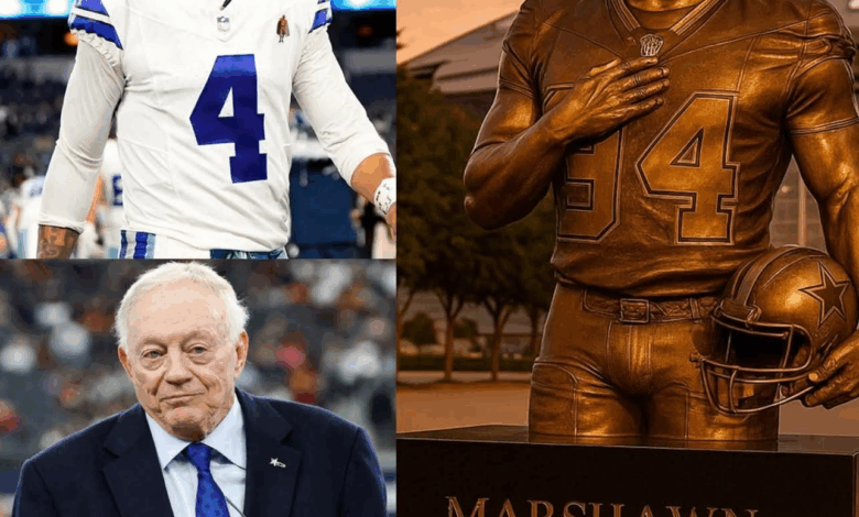 Arlington, TX — In the wake of the heartbreaking news of Marshawn Kneeland’s passing, the Dallas Cowboys organization has taken an extraordinary step that has shaken the football world. Quarterback Dak Prescott, standing alongside team owner Jerry Jones, announced a $2.5 million donation to commission a monumental bronze statue in Kneeland’s honor — a tribute unlike anything the franchise has done before.