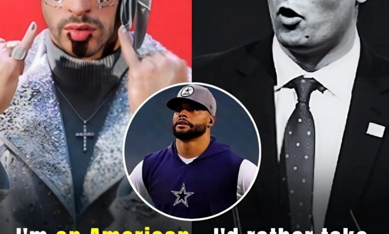 DALLAS, TX — In a move shaking both the sports and entertainment worlds, Dallas Cowboys quarterback Dak Prescott has ignited massive controversy after declaring he would boycott the upcoming Super Bowl if organizers proceed with Bad Bunny as the halftime performer.