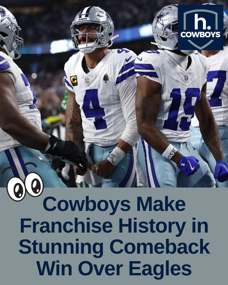 “Dak Prescott, after becoming the Cowboys all-time leading passer, becomes Dallas’ all-time leading QB in 4th quarter/OT comebacks, 25, by leading Dallas to (tie) the largest comeback win in team history (21 points) — and against the rival, defending Super Bowl champ Eagles,” Dallas Fox 4 Sports Anchor Jeff Kolb wrote on his official X account. “Wow.”
