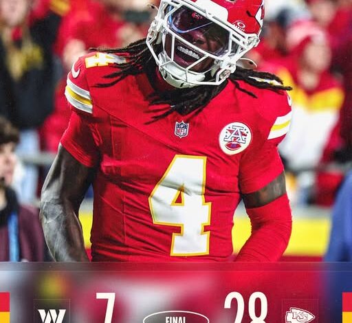 KANSAS CITY — The dynasty isn’t done. The machine hasn’t rusted. And the red tidal wave that has swept the NFL for the better part of a decade remains unstoppable. On a crisp Monday night under the Arrowhead lights, the Kansas City Chiefs dismantled the Washington Commanders 28–7 in a performance that felt less like a game and more like a coronation.