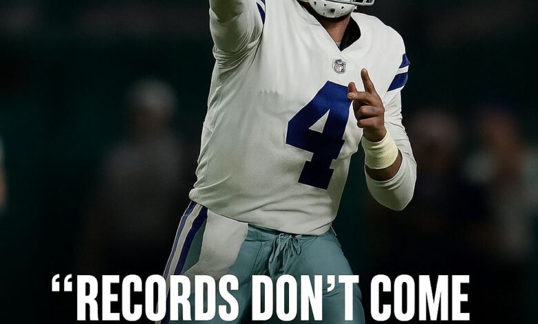 The moment wasn’t about numbers — it was about emotion, fame, and the weight of history. When the giant screen at AT&T Stadium flashed a congratulatory chart, his teammates surrounded Dak, some clapping, some compliments, but Dak just shook his head: “We’ll celebrate when we win. I don’t want to talk about this milestone yet.”