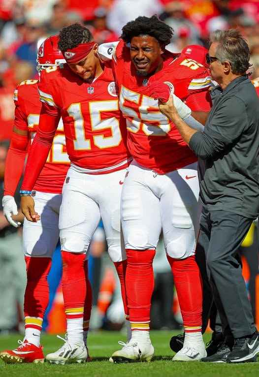Omarr Norman-Lott, the team’s young rookie, lay on the field in pain after a hard collision. With tens of thousands of spectators, Mahomes—the captain, the “big brother” of the team—didn’t hesitate for a second. He walked over, picked up his teammate, and carried him off the field to thunderous applause.