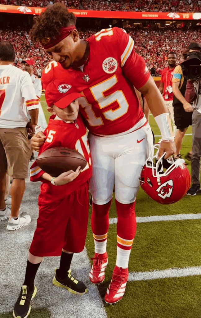 That moment not only moved fans, but also deeply engraved the image of Mahomes as a big brother, a leader with heart.