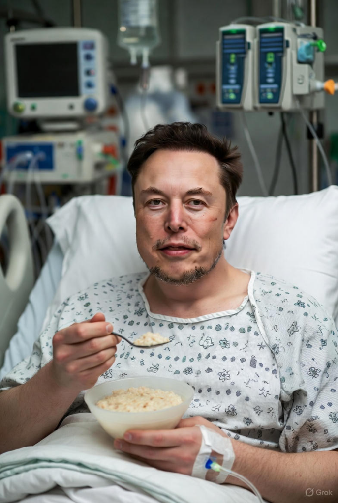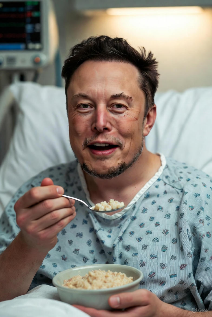 R1 According to circulating reports, Elon Musk has eaten his first bowl of porridge after more than a day in a coma — a positive sign that has eased many fears.