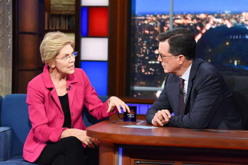 R1 Elizabeth Warren Just Floated a Shadowy Conspiracy Behind Stephen Colbert’s Sudden Cancelation