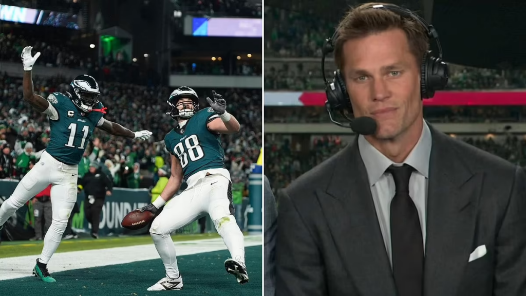 Just hours after the Eagles’ heartbreaking loss to the Los Angeles Chargers, the NFL was stunned when Tom Brady — the most decorated quarterback in league history — unexpectedly came to A.J. Brown’s defense live on FOX. As criticism poured in from every corner of the football world following Brown’s dropped touchdown, Brady delivered a message so powerful that it immediately shifted the tone of the national conversation.